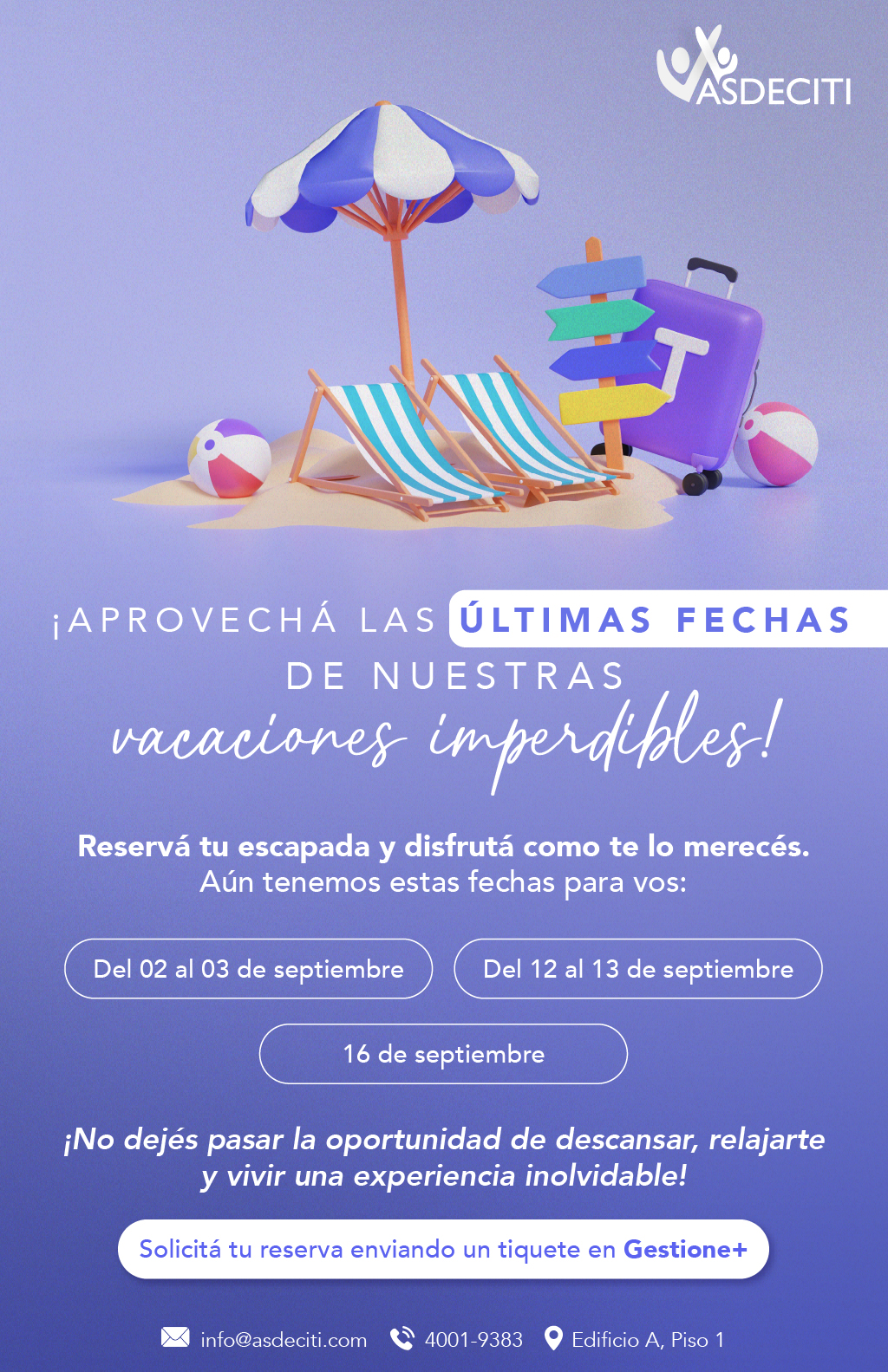 ¡APROVECHÁ LAS ÚLTIMAS FECHAS DE NUESTRAS VACACIONES IMPERDIBLES !