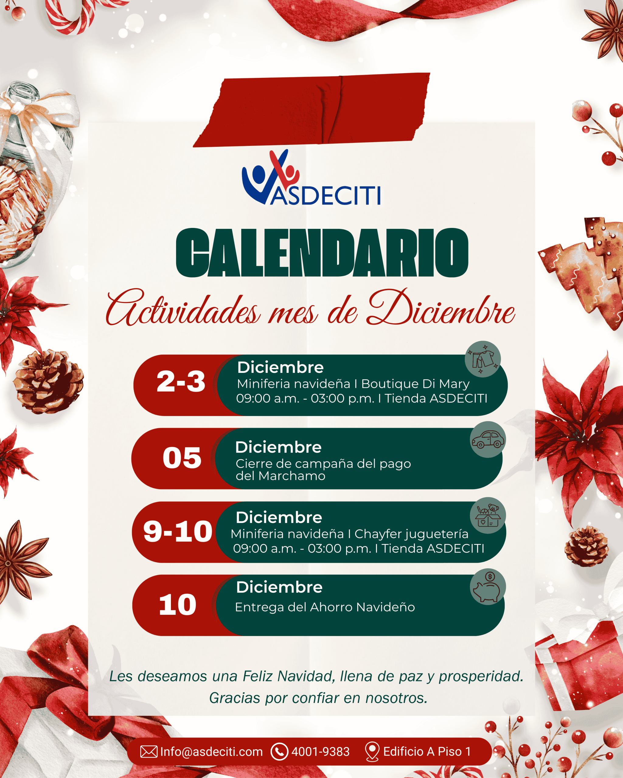CALENDARIO DE ACTIVIDADES DICIEMBRE