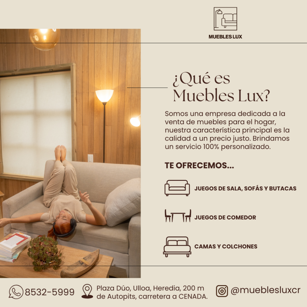 Redes Sociales: https://www.facebook.com/people/Muebles-Lux/61568379063425/#